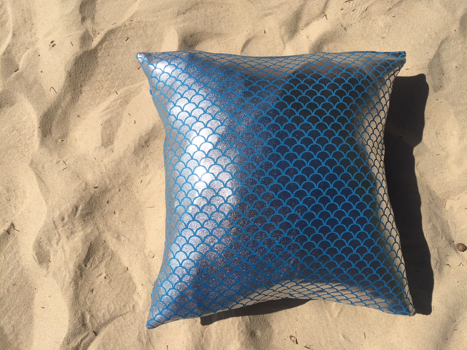 The perfect accessory for relaxing on the beach, this mermaid cover is a stylish blue with silver scales. The cushion cover does not include infill, and measures at 50cm x 50cm. Price includes $9.99 postage cost.